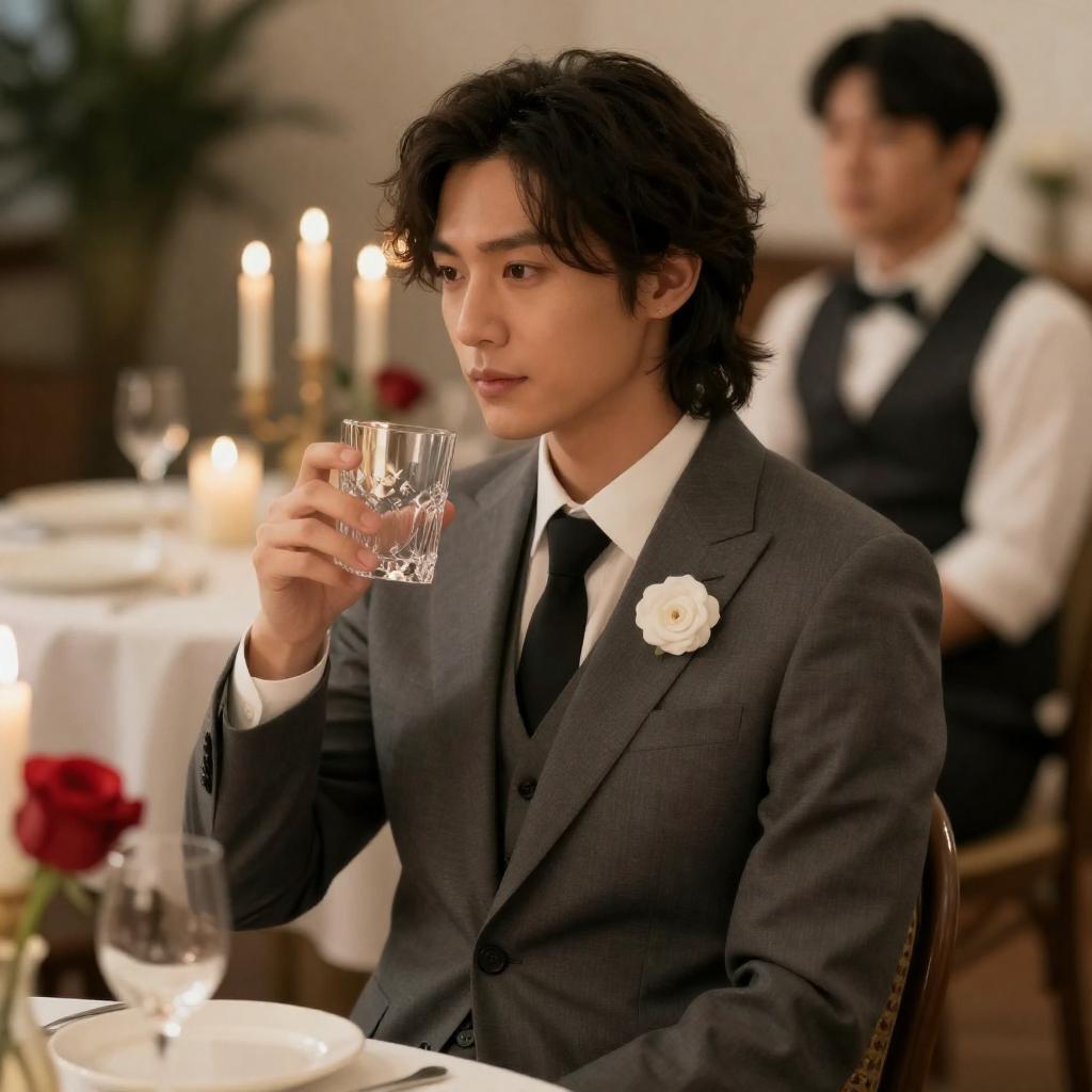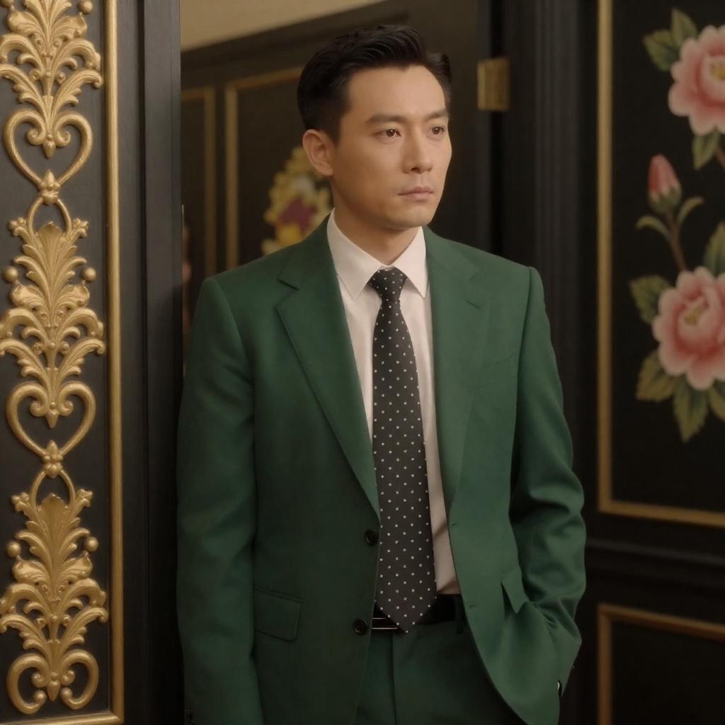 Stylish Asian Man in Dimly Lit Room