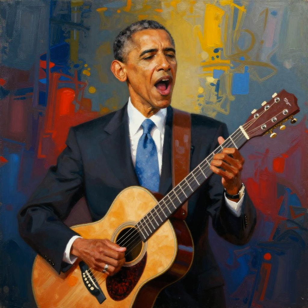 Anime style portrait of Obama, bold outlines, large expressive eyes, smooth gradients, soft lighting, wearing traditional Japanese attire with subtle modern twists, cherry blossoms floating around, calming and inspirational mood, high detail on face and hair