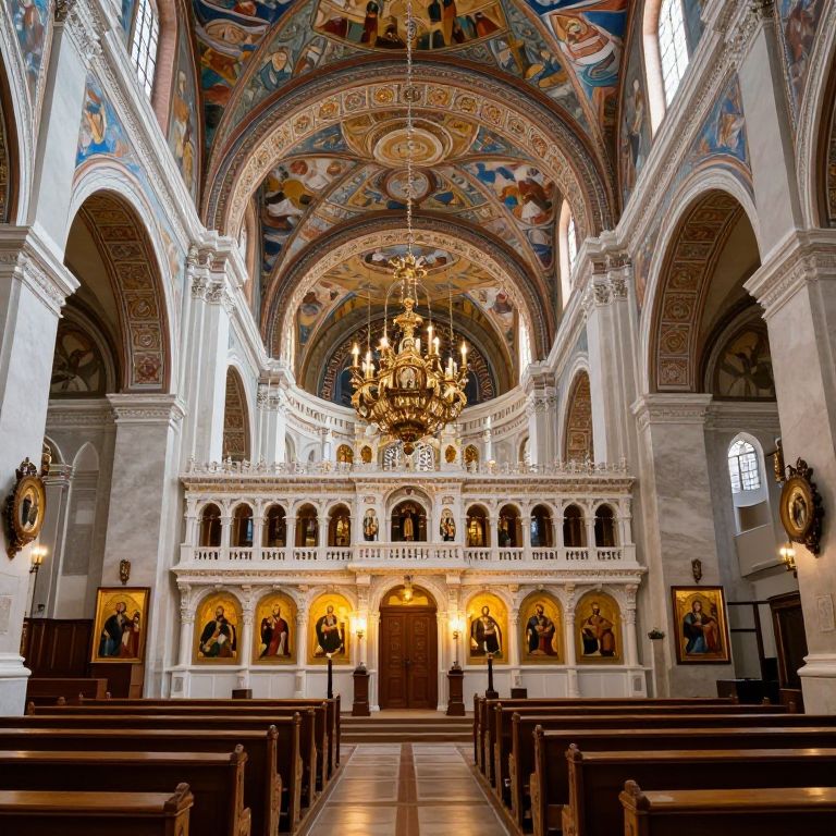Orthodox Cathedral Interior with Frescoes