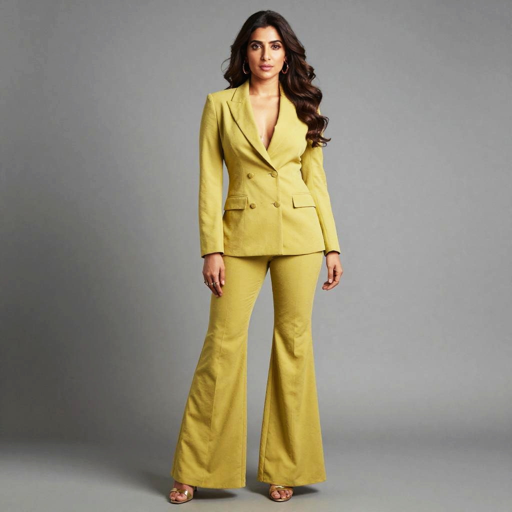 Flared Suit Mustard, anusha bhatia in a yellow dress
