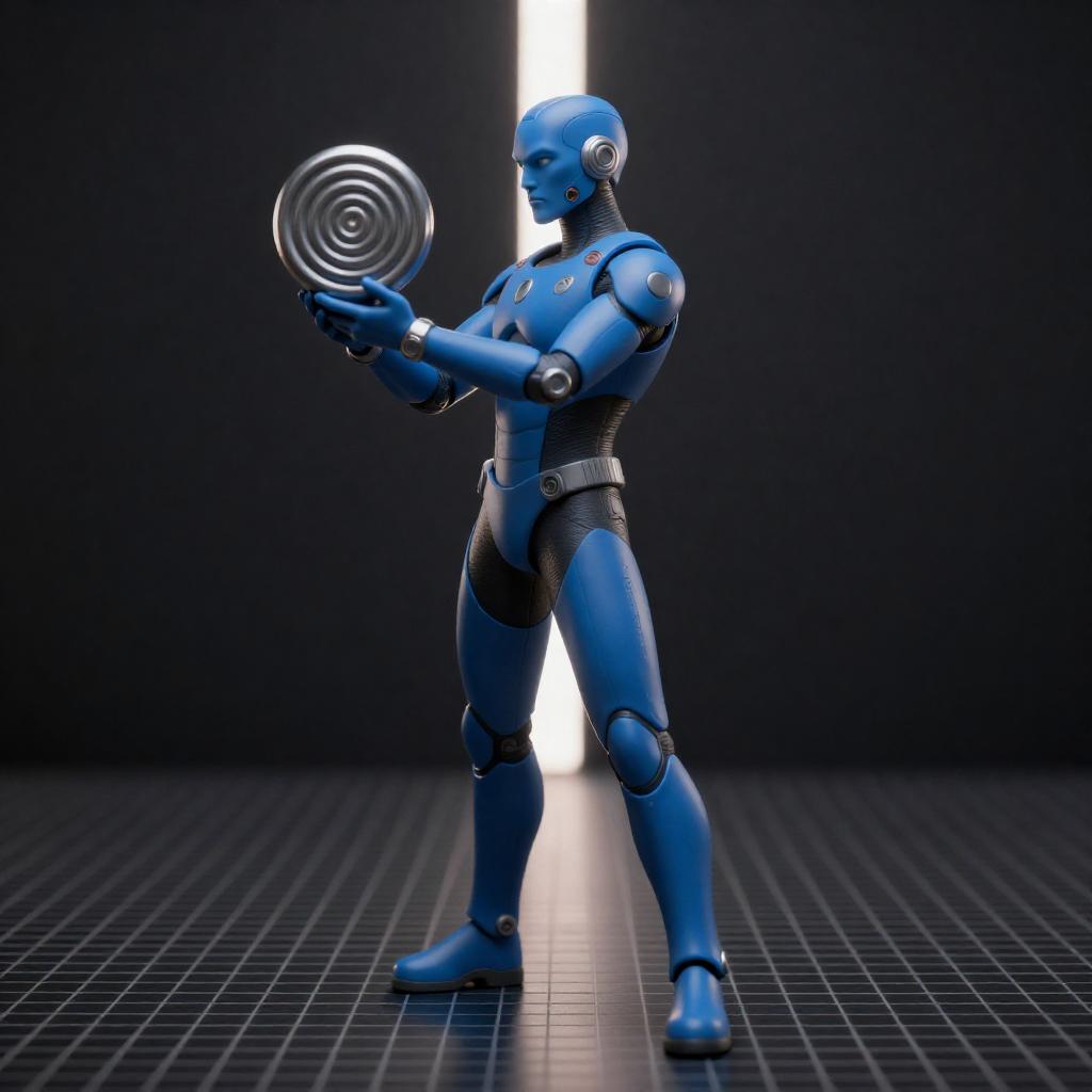 Futuristic Blue Humanoid with Spiral Object