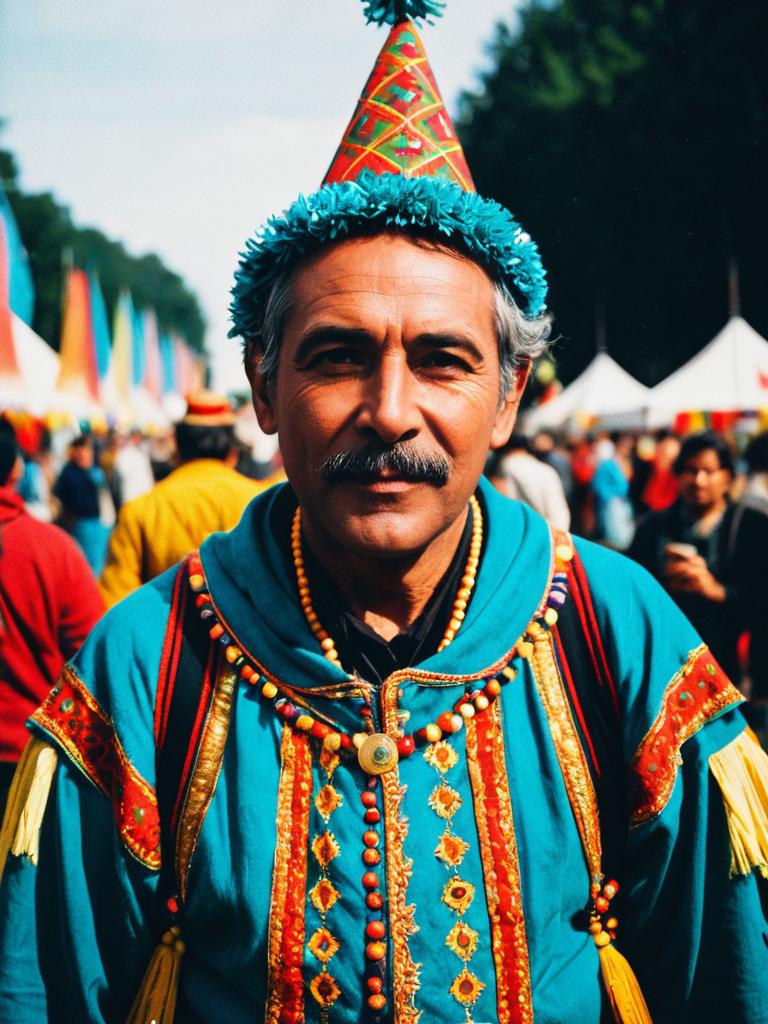 Man in Festival Costume, photorealistic outdoor portrait at parade