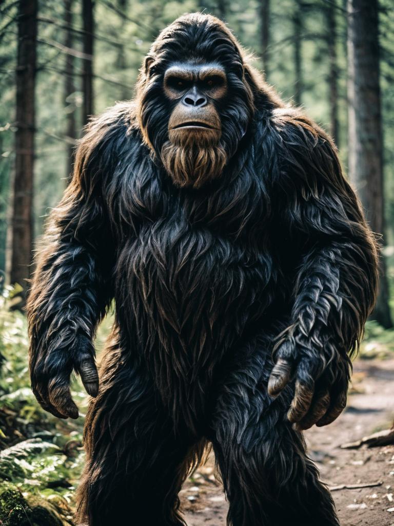Man in Bigfoot Costume, photorealistic wild creature cosplay portrait, cinematic realism