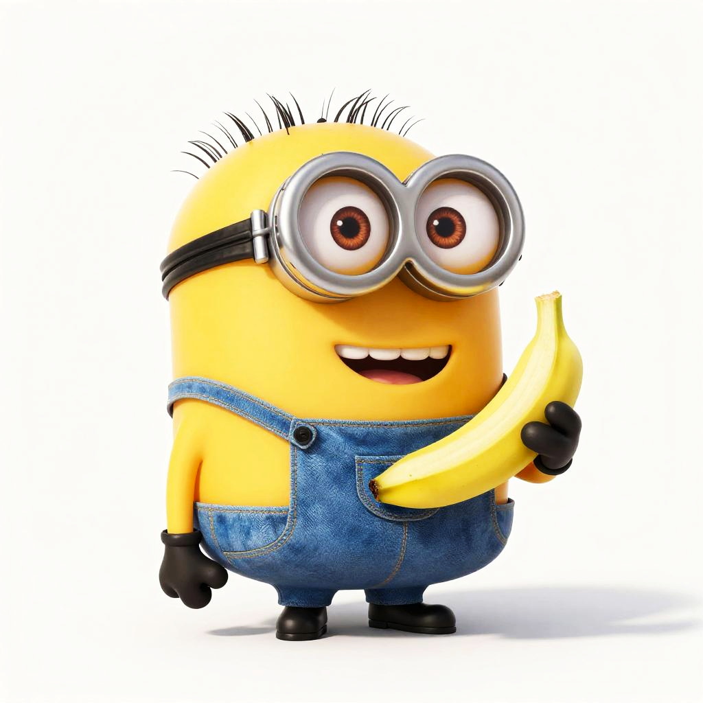 Lithograph of an anthropomorphic Minions eating a banana.
