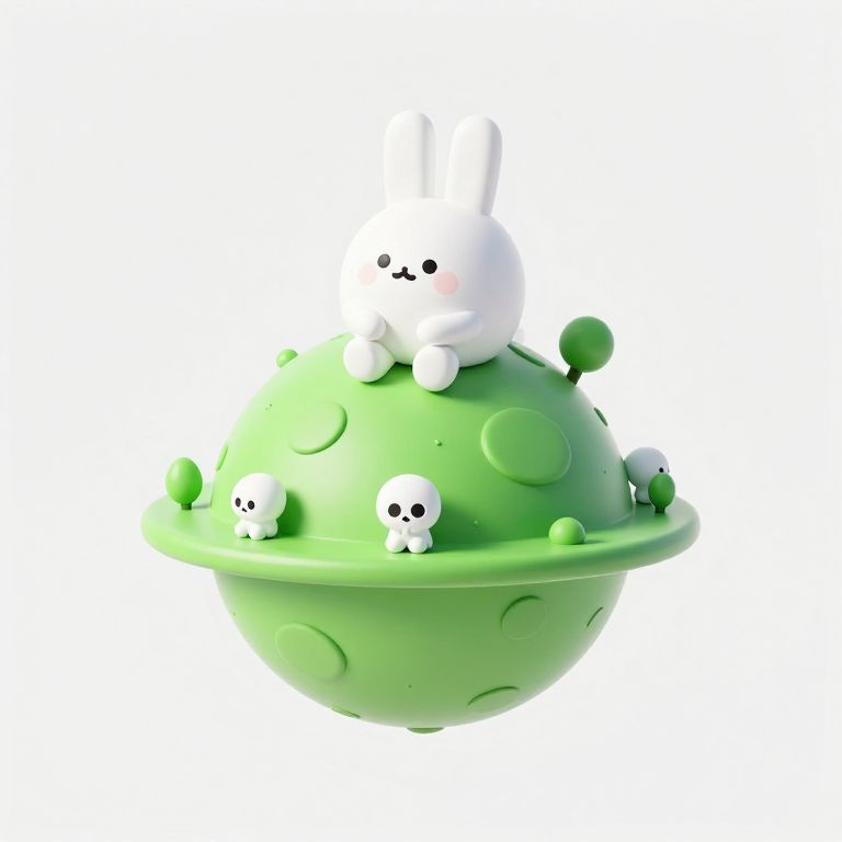 Digital illustration of a small, white, Greek-style temple on a green island surrounded by blue water. The temple features tall, white columns and is adorned with small trees, bushes, and colorful flowers. Surrounding the island are eight chibi-style, cute, cartoonish bunny-like creatures, each with a simple, round body and a small, smiling face. The creatures are in various colors: white, yellow, and orange. The background is a bright blue sky with a small, orange sun. The overall style is playful and whimsical, with a focus on cuteness and simplicity.