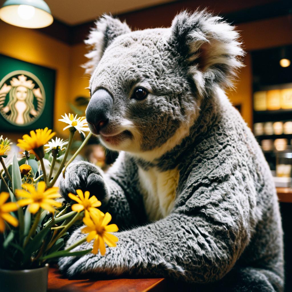 Hyper-realistic photo of Charmander painting at Starbucks, in technicolor style. Photographic quality with cinematic lighting, shot on Eastman Kodak Colour Negative film 5251, 8k resolution, ultra-detailed and vibrant.
