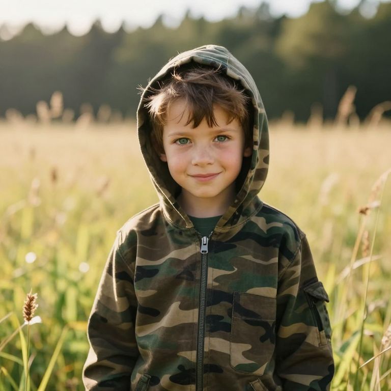 Cheerful Boy in Bear-Eared Hoodie