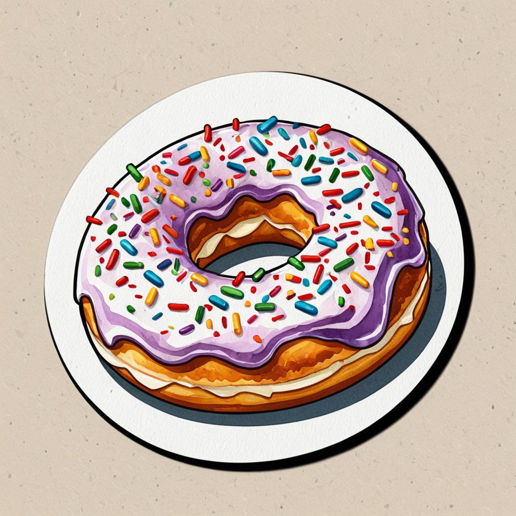 Watercolor Donut Sticker with Sprinkles