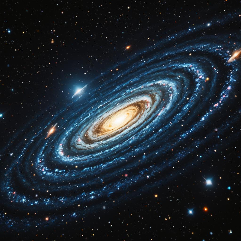 A hyperrealistic digital rendering of a spiral galaxy captured in stunning high detail with vibrant colors and high contrast. The image features multiple galaxies in the background, showcasing a deep field of stars and cosmic dust with a cinematic and epic composition. Created using advanced rendering techniques to achieve photorealistic quality, the scene highlights the intricate structure of the galaxy's arms and bright core, set against the vastness of space.