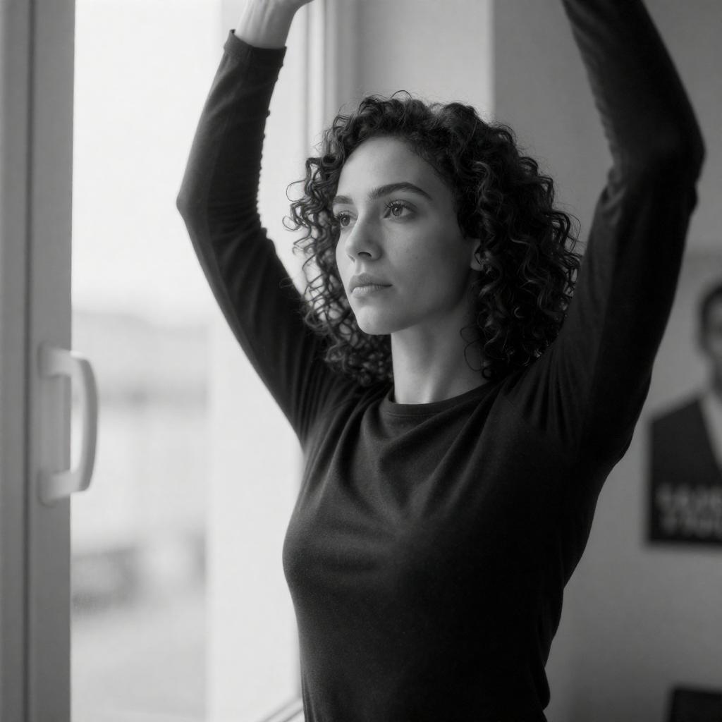 Energetic Woman Dancing in Blue Room