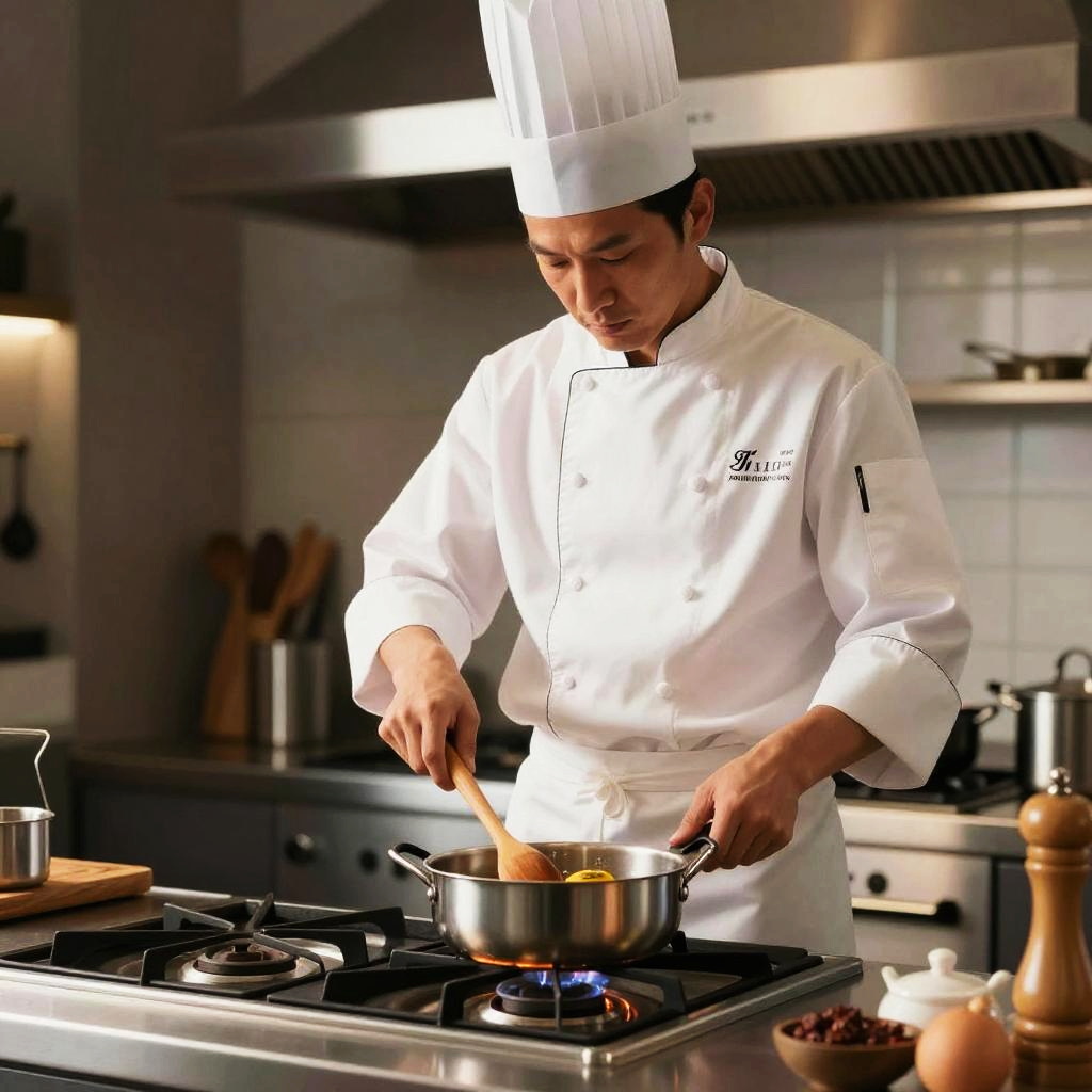 HDR, UHD, 8K, Highly detailed, realistic, photo-realistic:1.37), best quality, masterpiece, chef, cooking in the kitchen