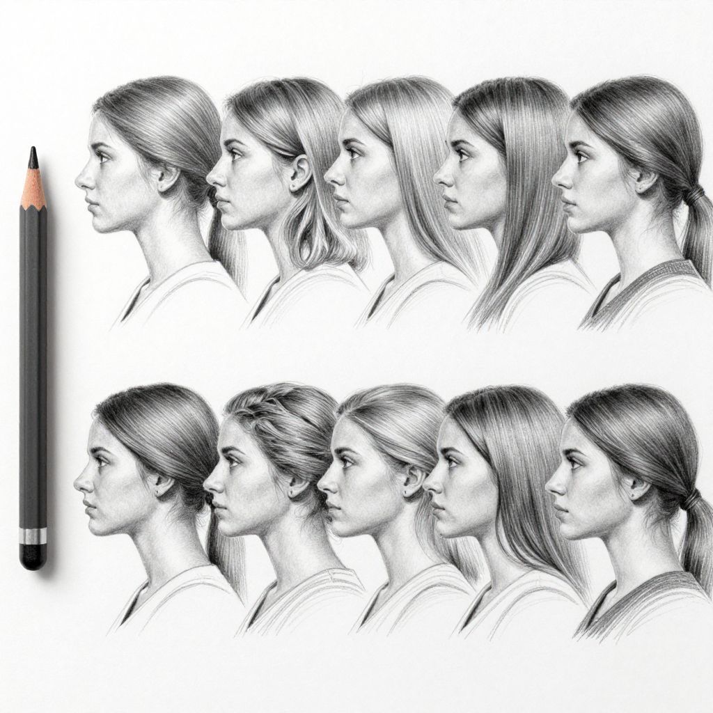 Detailed Pencil Sketches of Women Profiles