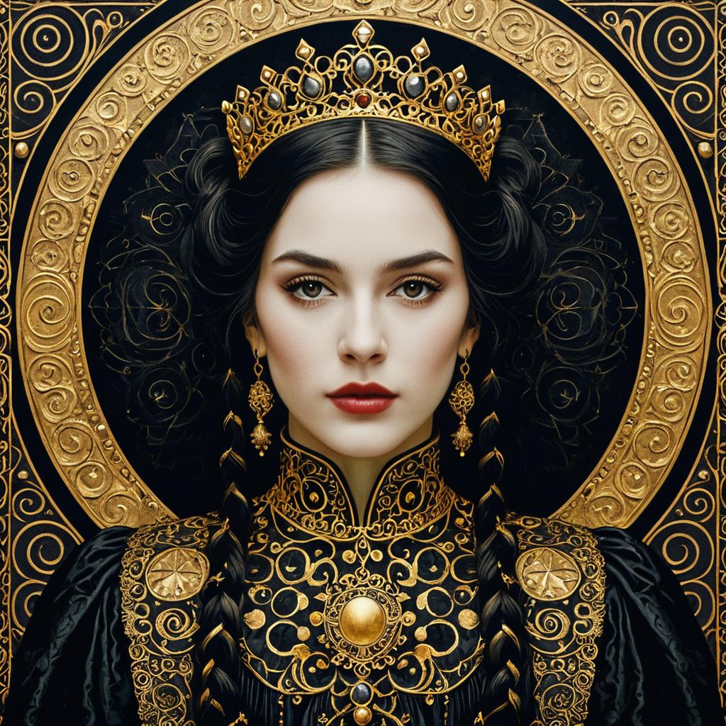 Regal Woman in Golden Crown and Ruby Necklace