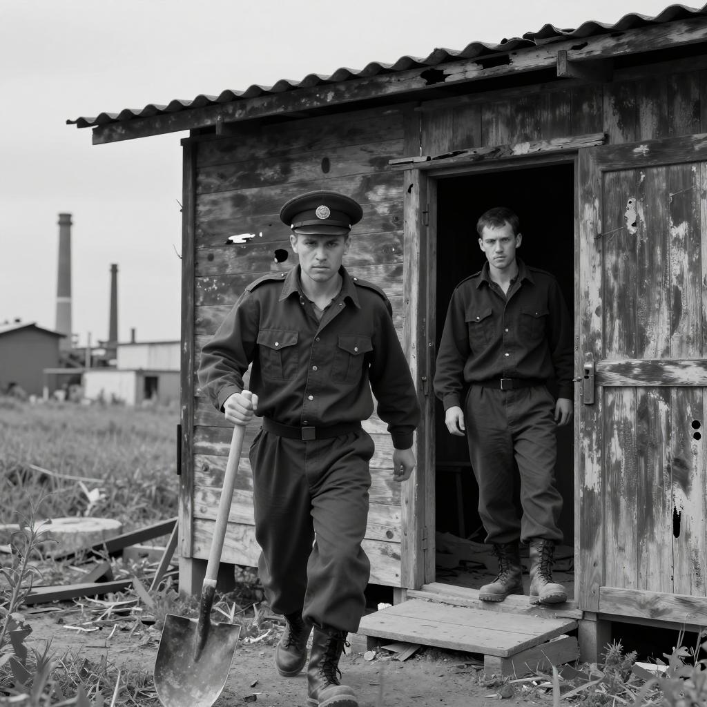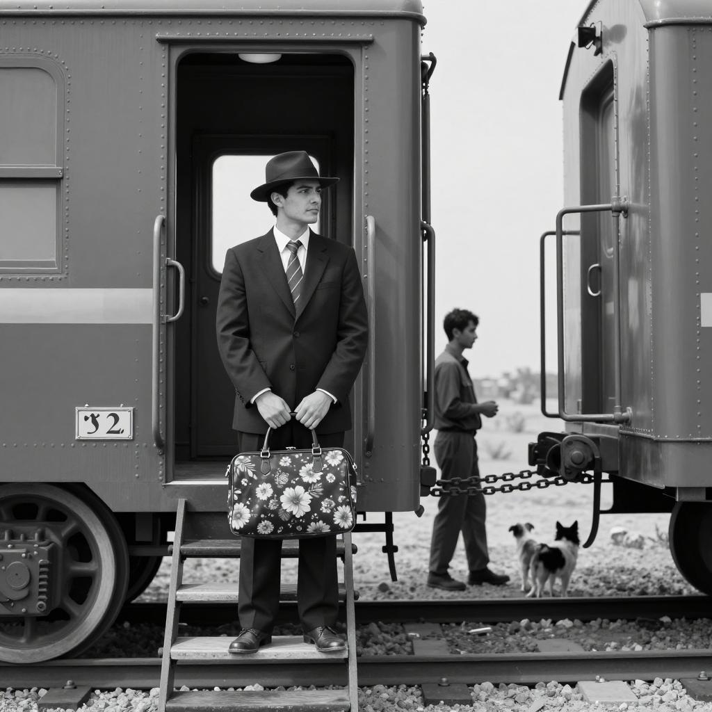 Mysterious Figures on Foggy Railroad Tracks