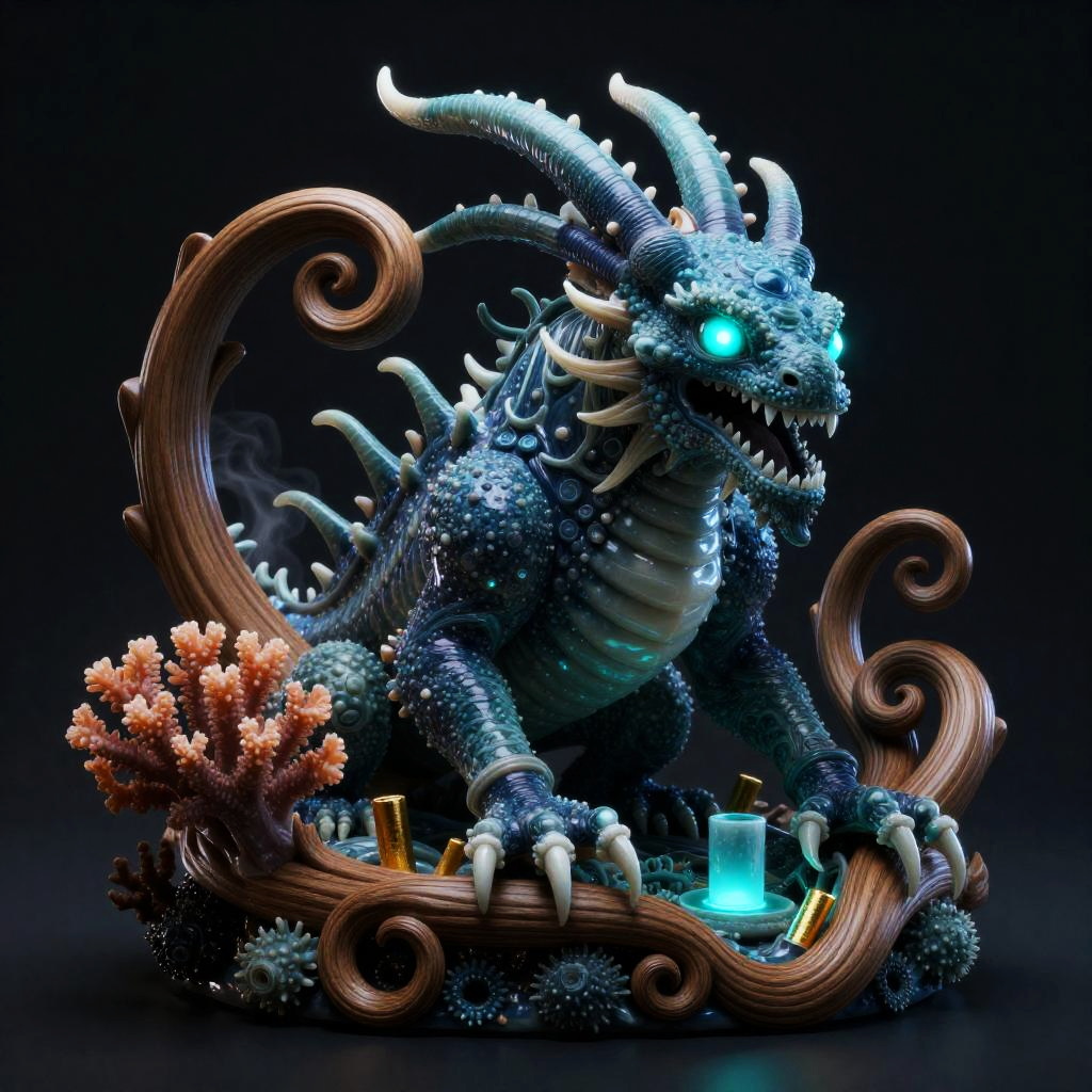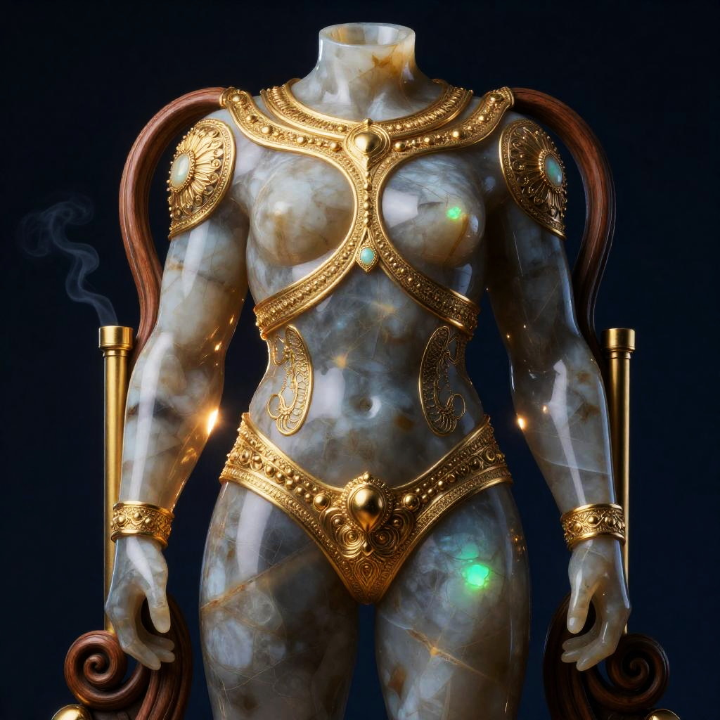 Astronaut made of weathered stone, wooden art nouveau swirls, strong subsurface scattering, smoke, tubes, gold elements, subsurface scattering, in the style of ruan jia and beeple and giger, subsurface scattering, copper and emerald green, back light, rim light, dramatic lighting, 8k, stunning scene, raytracing, octane render, trending on artstation