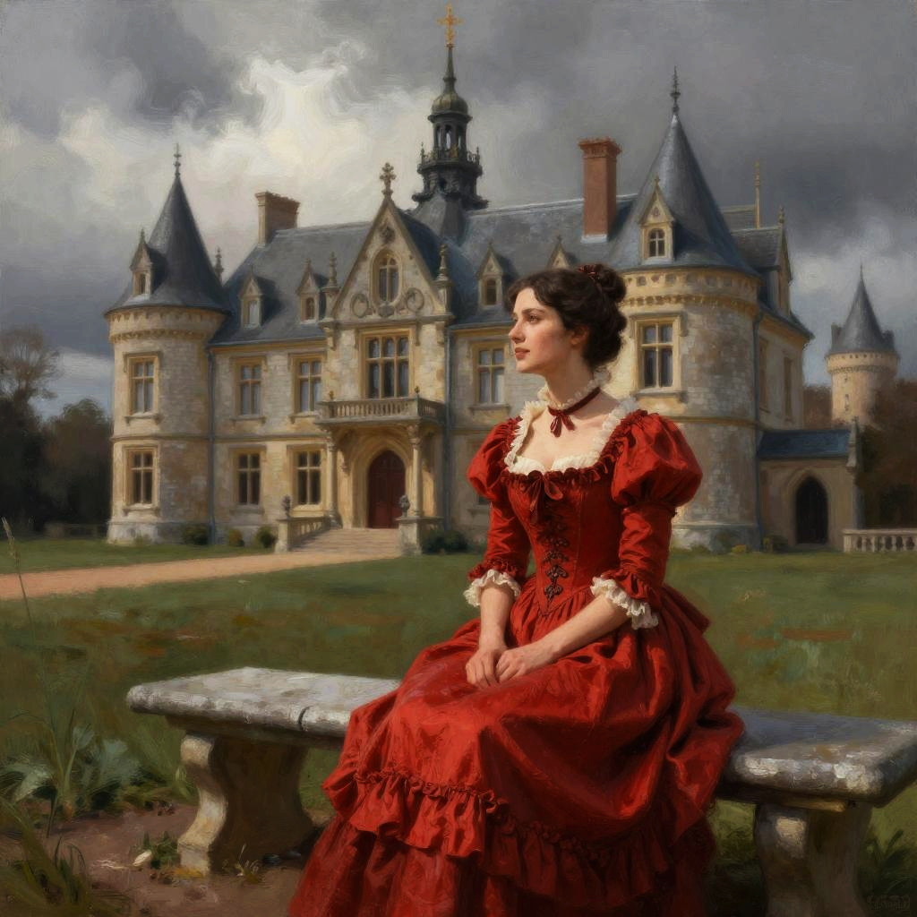 Realistic photo.18th century. A dramatic moment where a young woman packs up all her things into a luggage and is about to leave her home in Delhi. It in the style of Claude Monet’s Impressionism. realistic photo
