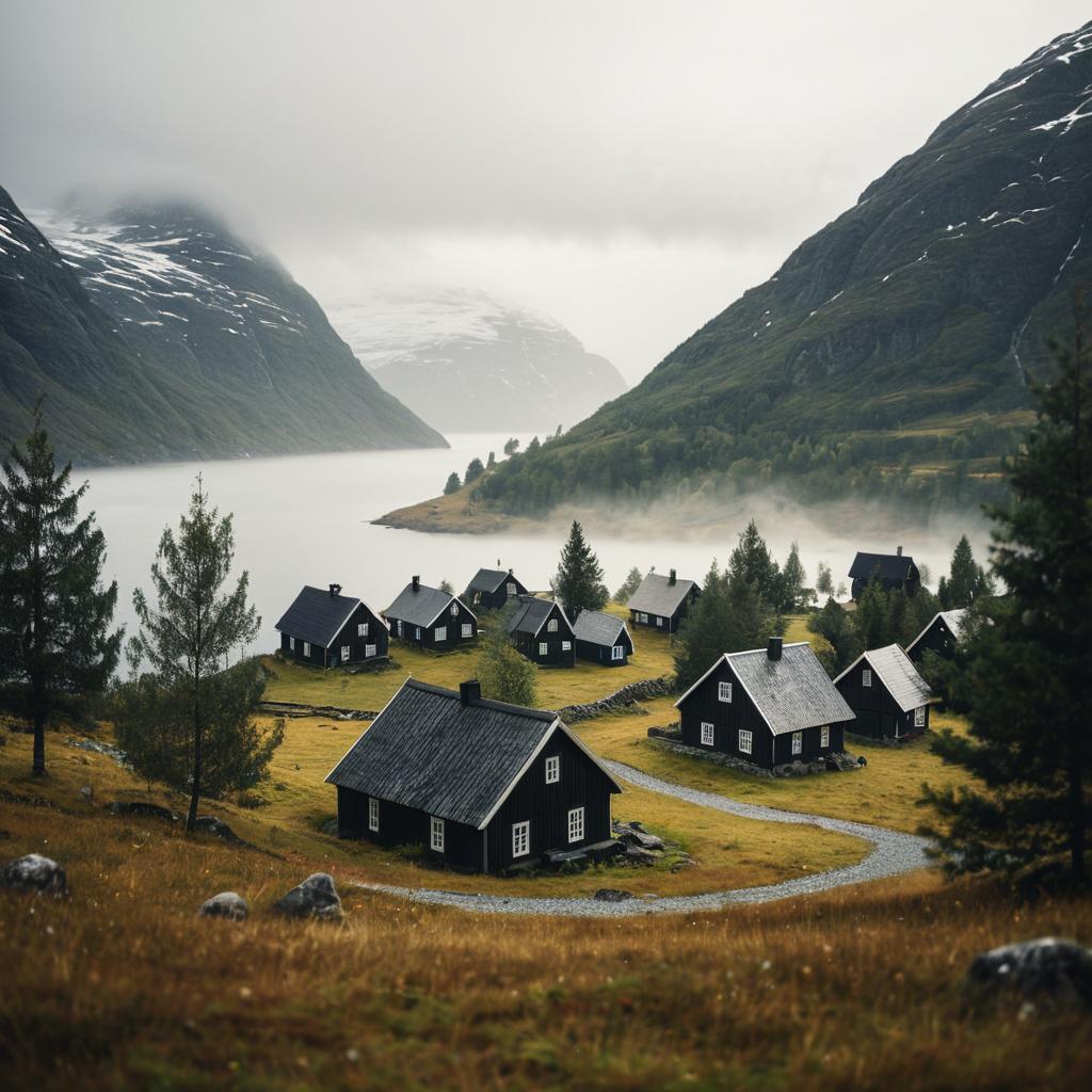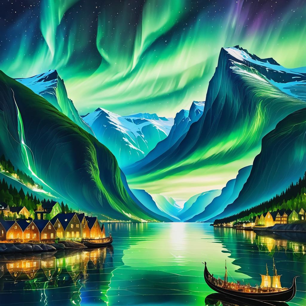 A hyperrealistic futuristic city inspired by the Norwegian Fjords with steep cliffs, deep blue waters, and wooden cabins, transformed into a cliffside city with winding balconies and gliding aerial vehicles, ultra-detailed, surreal, and vibrant design