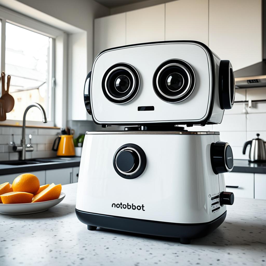 Quirky Blue Toaster Robot in Modern Kitchen