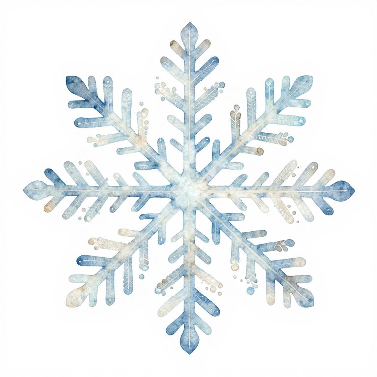 The image features a highly detailed, symmetrical snowflake with a white background. The snowflake is composed of intricate, interlocking branches and leaves, creating a complex, organic pattern. The colors are soft and pastel, with shades of blue, white, and light brown, giving the snowflake a delicate, ethereal appearance. The branches and leaves are adorned with small, round dots and lines, adding texture and depth to the design. The snowflake is centered in the image, with its symmetrical structure radiating outward in a balanced, harmonious manner. The overall composition is visually striking, with the snowflake's detailed patterns and soft colors creating a sense of tranquility and wonder.