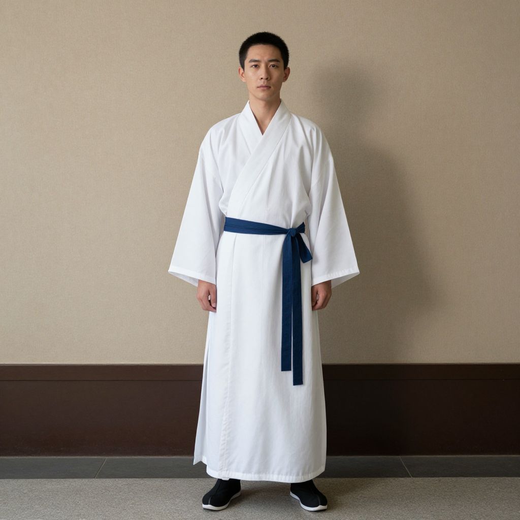 Guy Sensei Costume, man in traditional chinese clothing standing in front of a wall