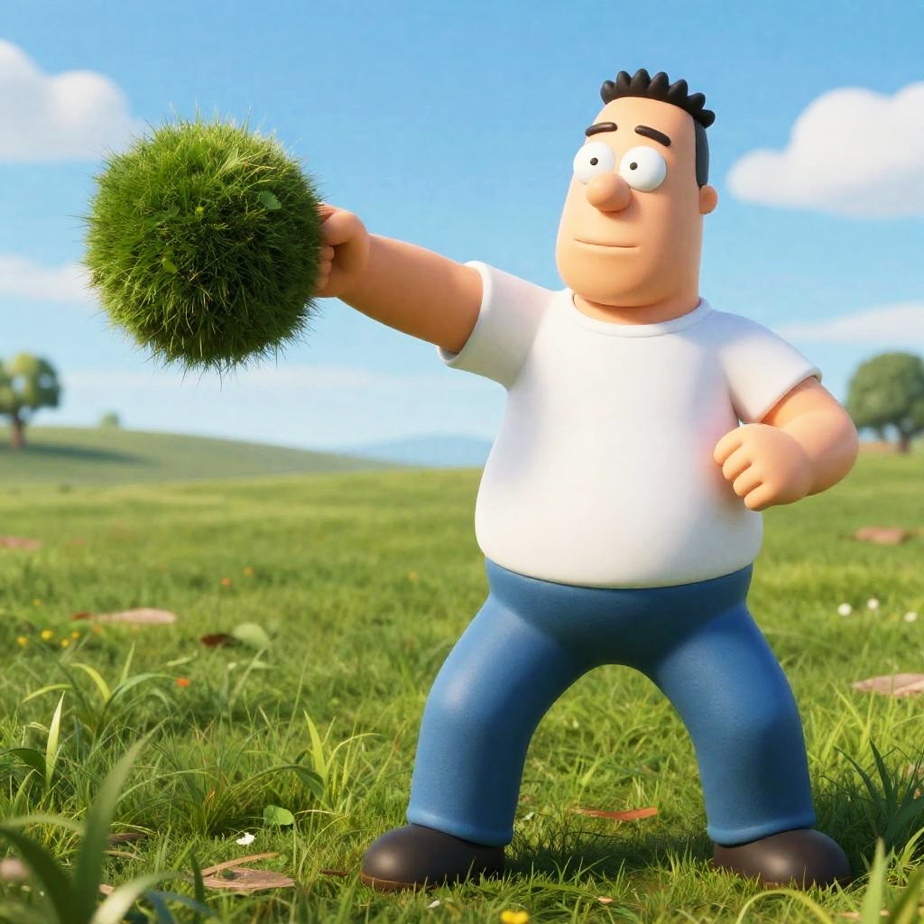 (masterpiece, best quality, absurdres, 4k, aesthetic, detailed, intricate, perfect lighting), grass, incoming punch, realistic, IncrsPunchMeme, hank hill, white t-shirt, jeans