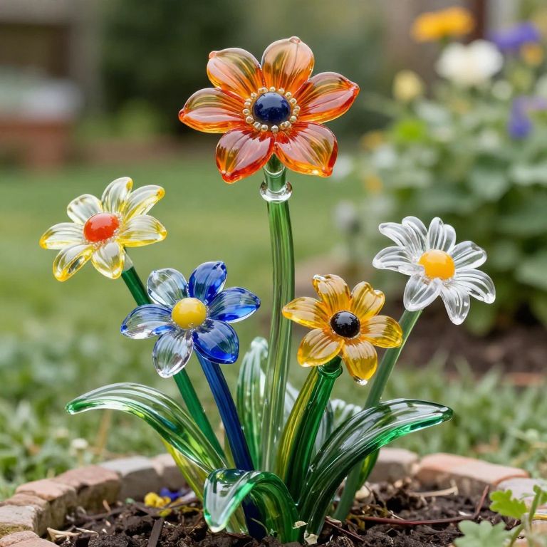 Recycled Glass Yard Art Flowers