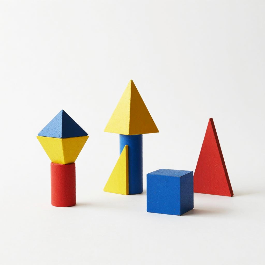 Bruno Munari useless machines depicted as interactive sculptures with geometric forms and vibrant contrasts, set against a clean white background, showcasing innovative simplicity.