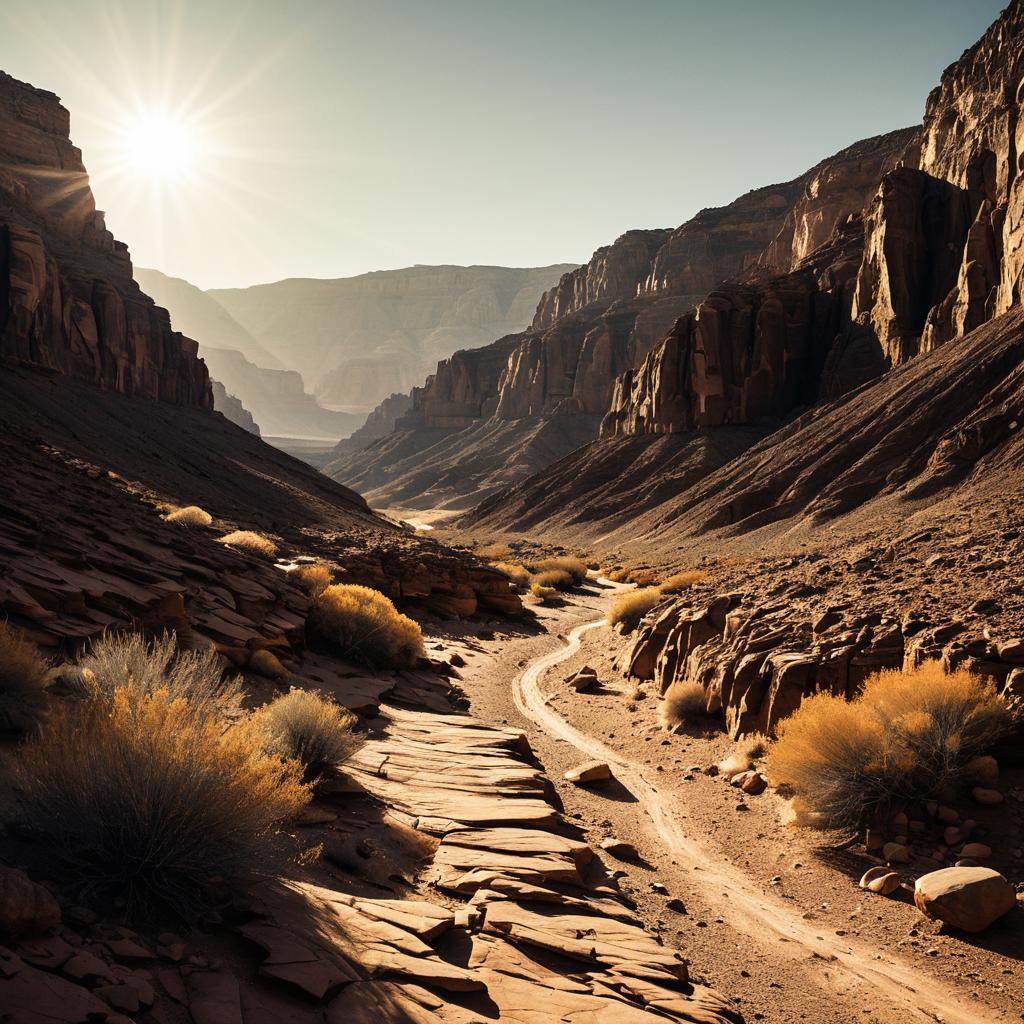 A photorealistic depiction of a sunlit canyon with towering red rock formations, with a peregrine falcon soaring gracefully, surrounded by golden hour light casting warm shadows, idyllic and natural, captured in cinematic photography style
