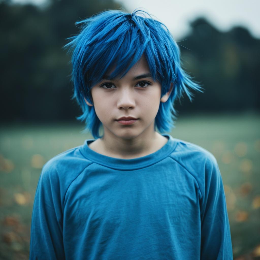 Portrait of a young Asian male with green hair wearing a green hoodie with black sleeves and black leather gloves. He is looking directly at the camera with a serious expression. The hood is pulled over his head, and the background is a plain light grey.