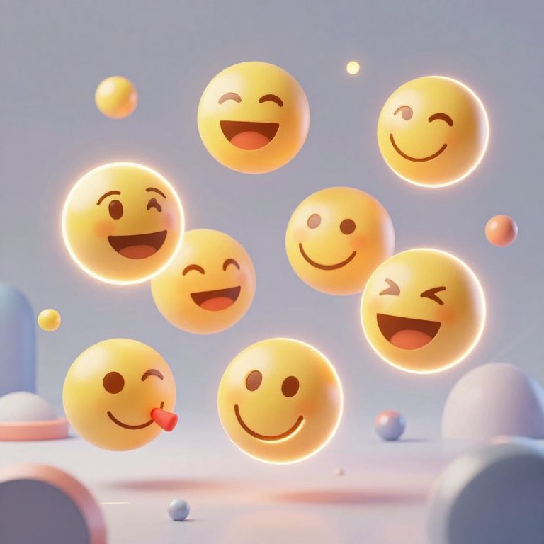 Select emoji depicted as 3D floating symbols in a surreal digital space, glowing outlines and dynamic movement, surrounded by abstract geometric shapes and soft light effects, futuristic and artistic composition emphasizing selection and interaction.