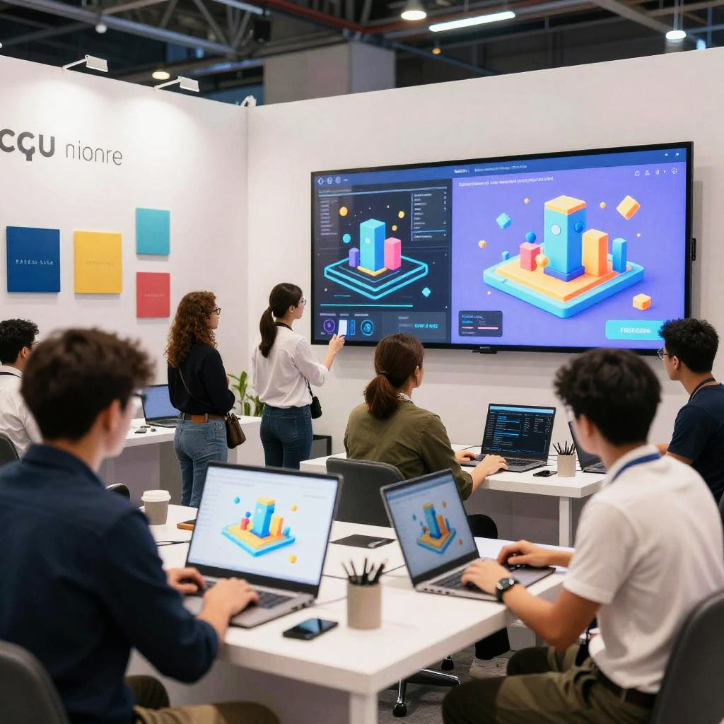 Futuristic Tech Expo with Interactive Displays