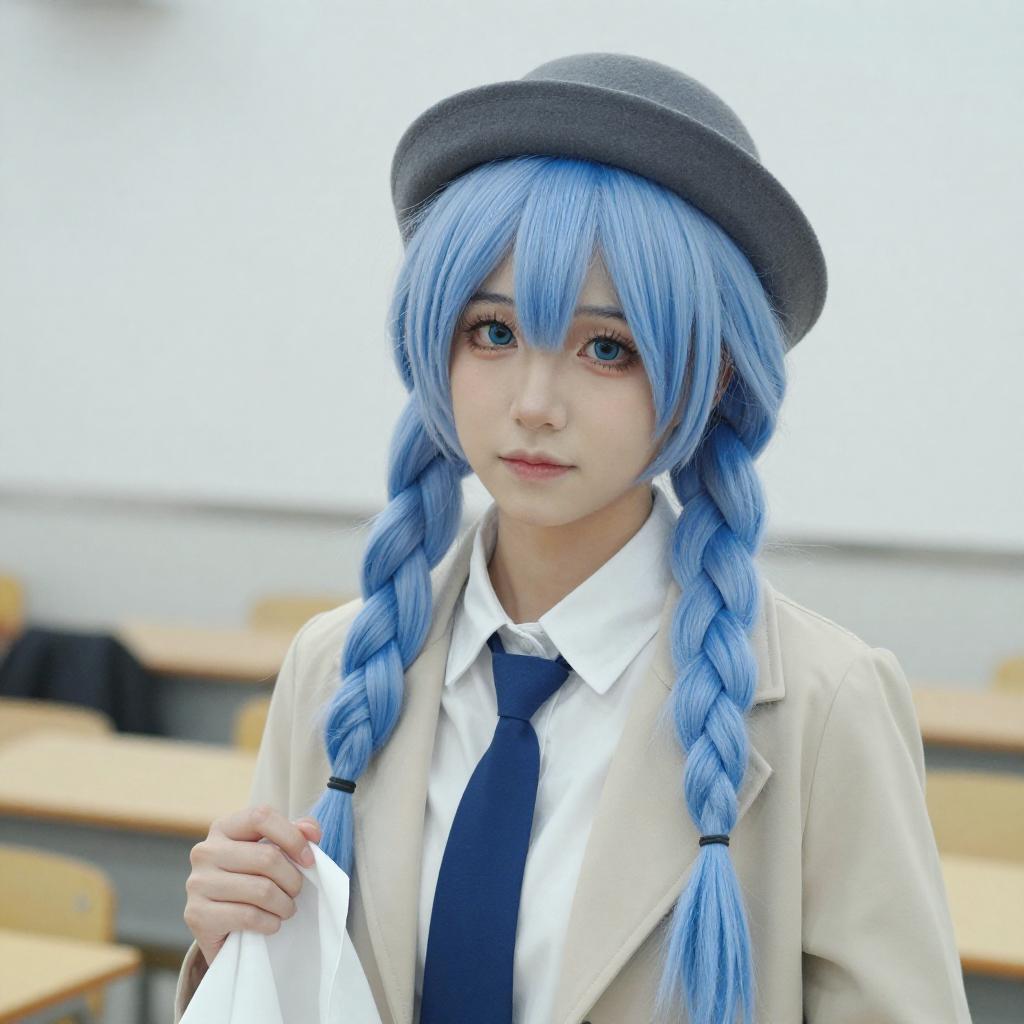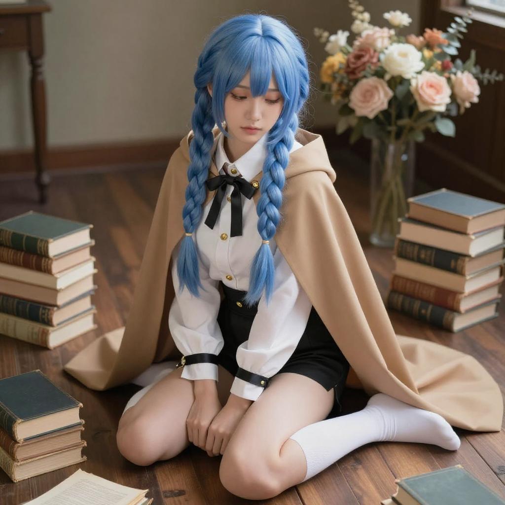 Blue-Haired Anime Girl with Books