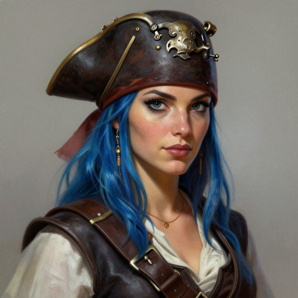 Blue-Haired Woman Pirate Portrait