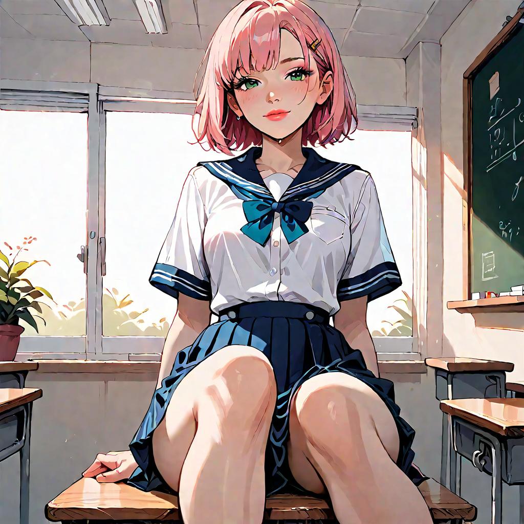 Anime Girl in School Uniform Sitting