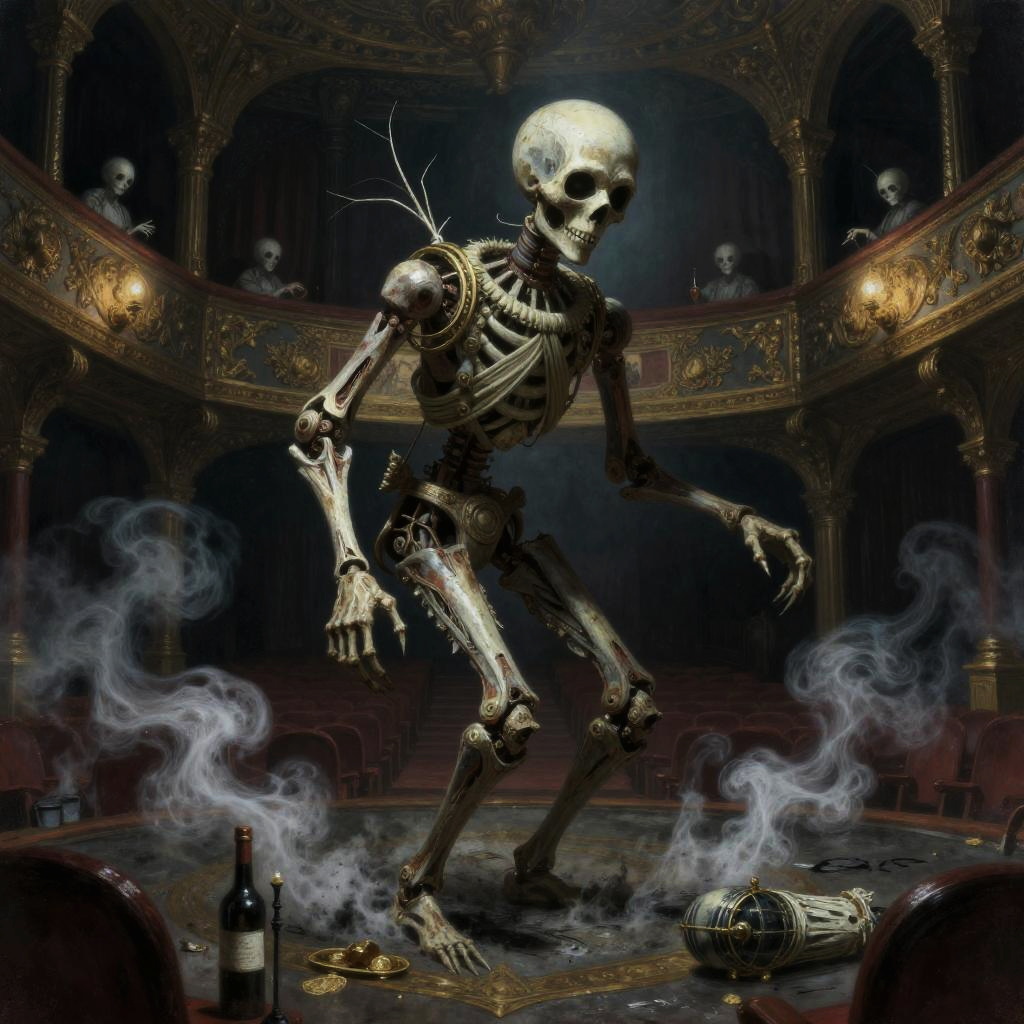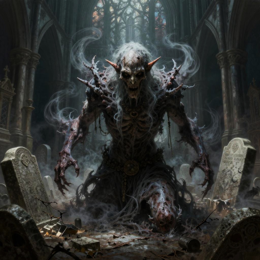 A dark fantasy horror painting of rotting cathedral priest knee‑deep in damp crypts and flickering candlelight, an ornate, hyper‑detailed cinematic masterpiece by Francisco Goya and H.R. Giger, ultra high resolution
