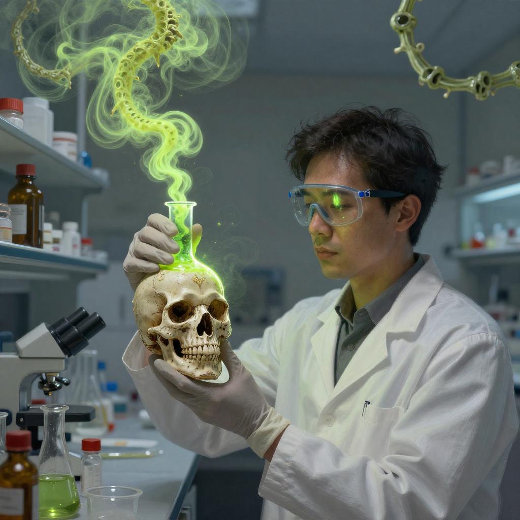 Patient Woman with Glowing Skull Vial