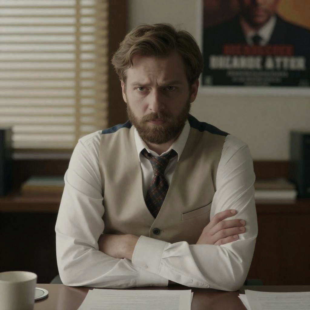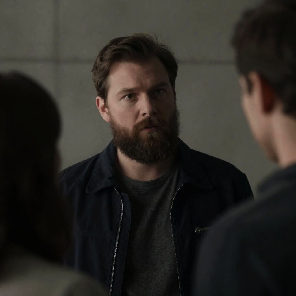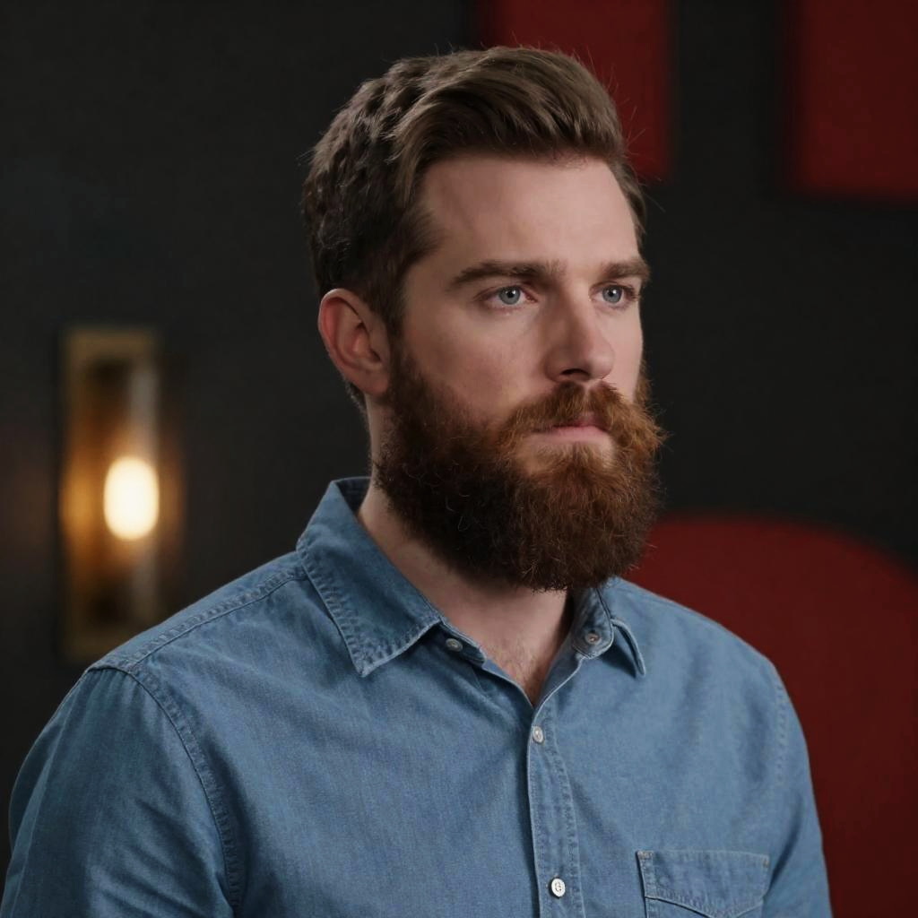 Serious Bearded Man in Plaid Shirt