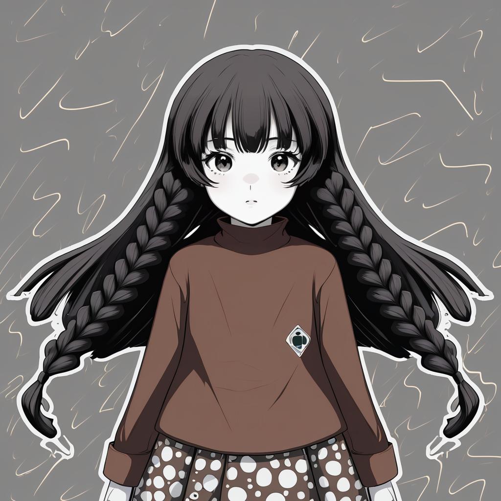 Monoe, yume nikki, 1girl, long hair, black hair, brown hair, twin braids, skirt, by artist blew andwhite, anime