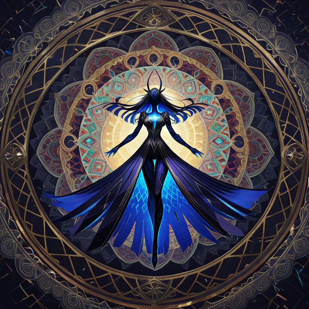 (geometric abstract background:1.2), esoteric, 1girl, depth of field, (zentangle, mandala, tangle, entangle), official art, unity 8k wallpaper, ultra detailed, beautiful and aesthetic, masterpiece, best quality, (dynamic angle:1.4), glowing skin, (floating colorful sparkles:1) the most beautiful form of chaos, elegant, a brutalist designed, vivid colours