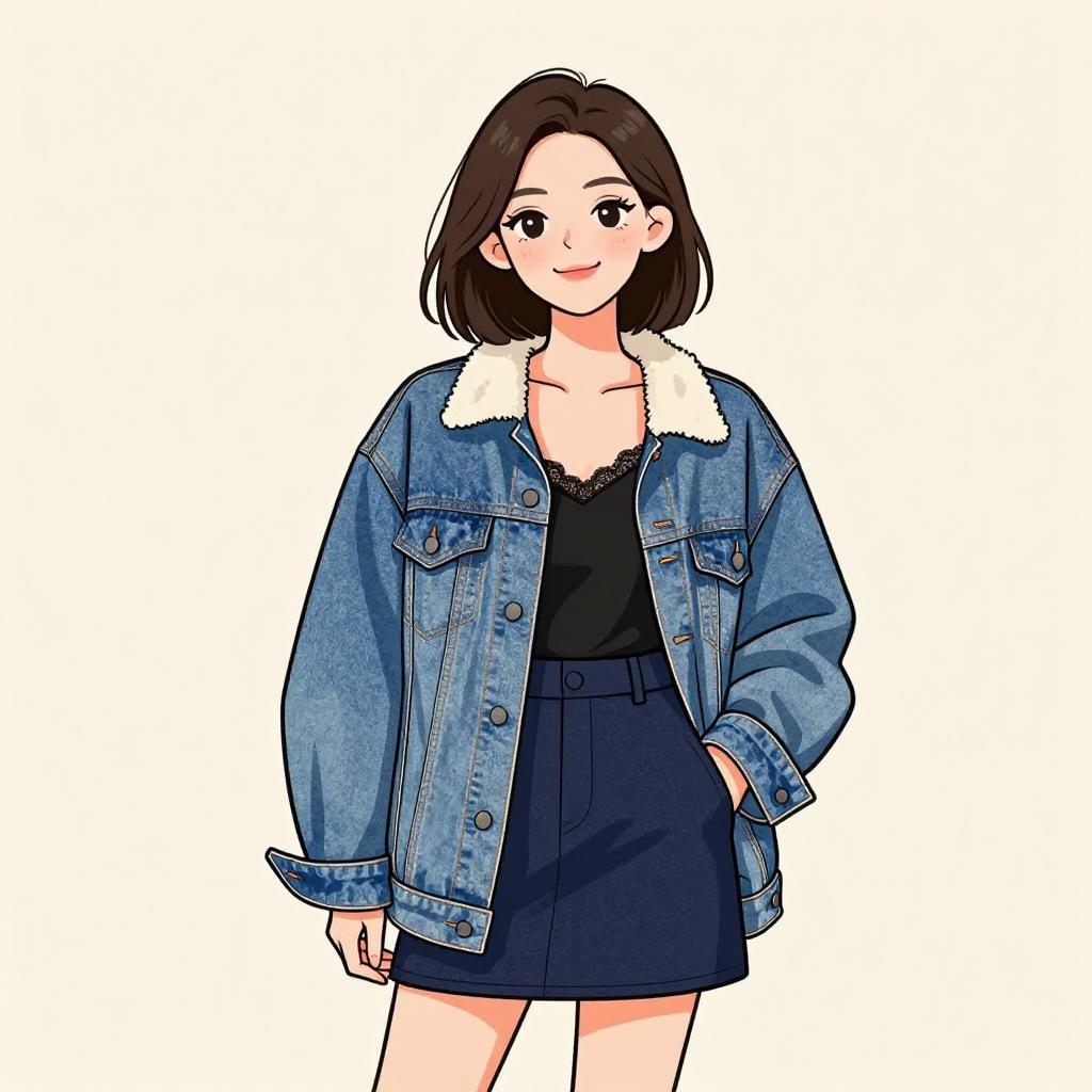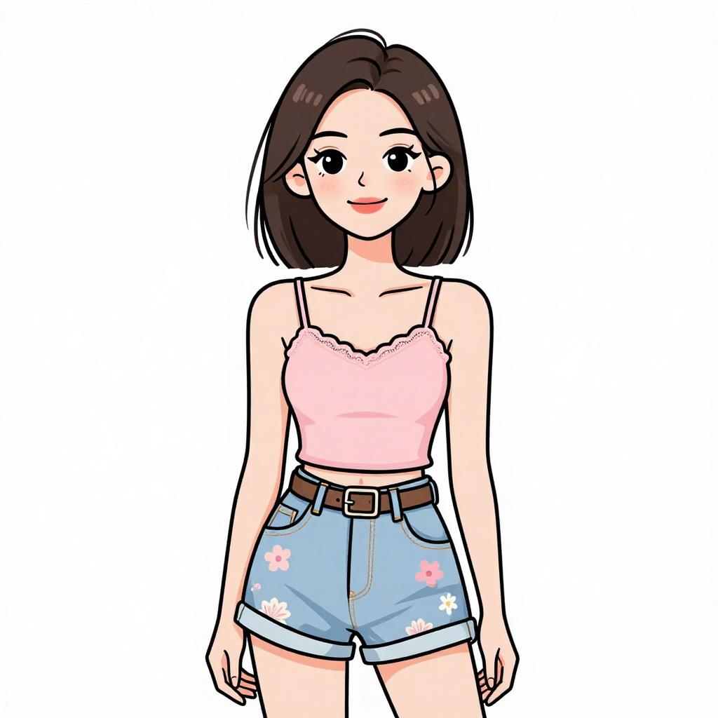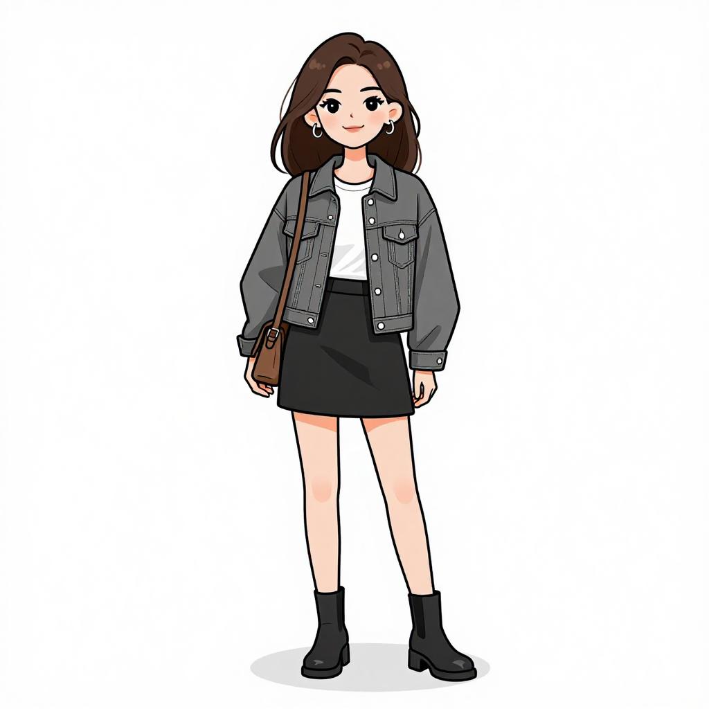 Woman with pretty face and pretty hair. smiling Woman, casual streetwear, glossy pink raincoat with hood, zip-up front, flap pockets, cuffed long sleeves, thigh-length, layered over a simple white dress, just above knee, black ankle boots with low heels, plain background. --sref 1467