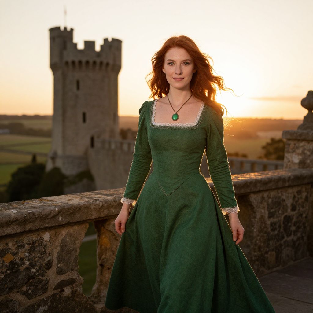 A realistic photograph of beautiful smiling (m4gr4ce:1.1) woman in a (1840's Victorian era ballgown|suit of armor:0.6) in the fashion of (armor battle dress:1.2), posing for a picture, standing in front of a (medival castle:1.3), [victorian dress|armor:0.5], 4K, Masterpiece, highres, absurdres, photorealistic, smiling, PA7_Portrait-MCU