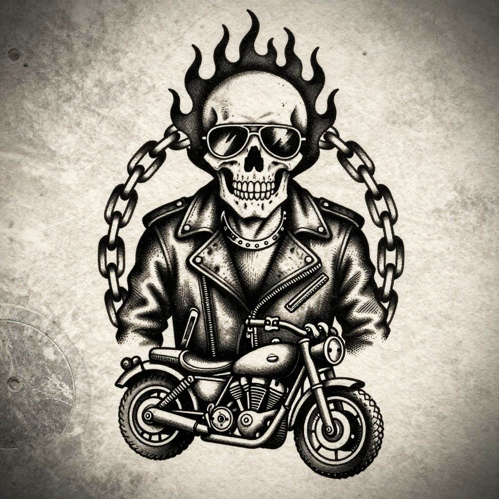 Vintage Tattoo Cyclist Ink Illustration