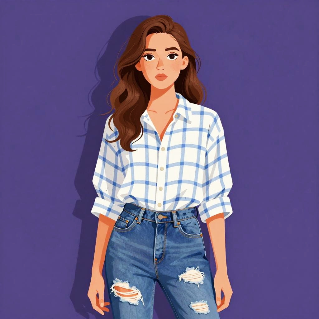 This is a collage-style digital portrait of a young Mediterranean woman with long curly black hair, with a radiant smile, almond-shaped eyes, and rosy cheeks. The subject wears a flowing white blouse with delicate lace seams. Minimalist, sketch-like linework, soft edges, limited palette; the background is soft mocha with torn paper edges. Clean composition, gentle light, balanced negative space, modern editorial illustration.