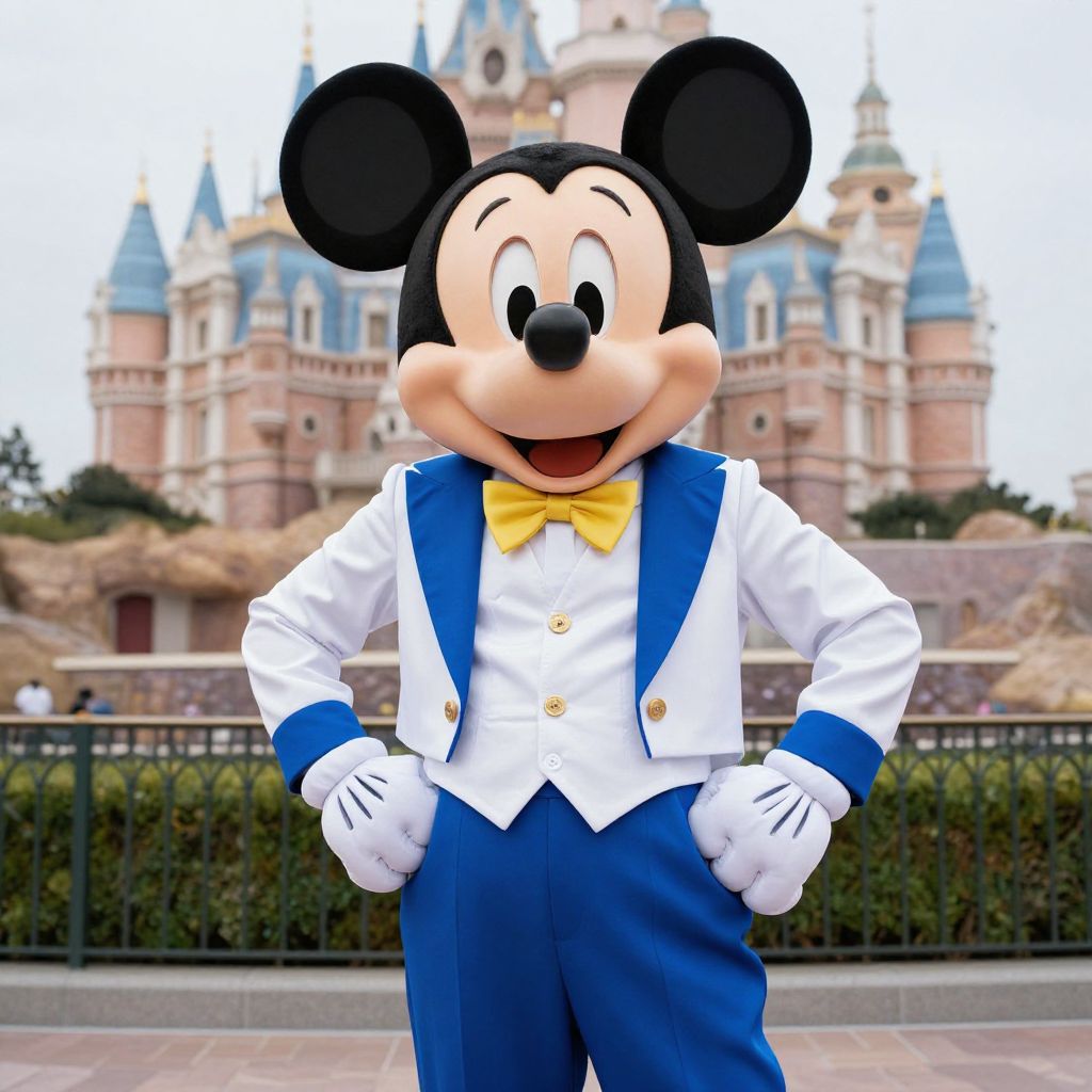 Week Disney Costume, mickey mouse costumed man in a white and blue outfit