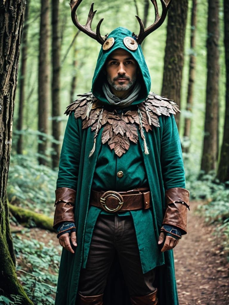 Man in Enchanted Forest Costume, cosplay festival photo, photorealistic realism