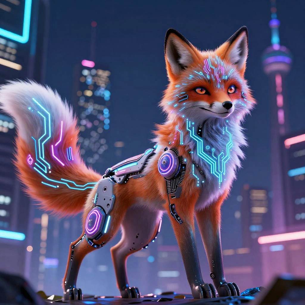 Cyberpunk AI Animal in Neon Night