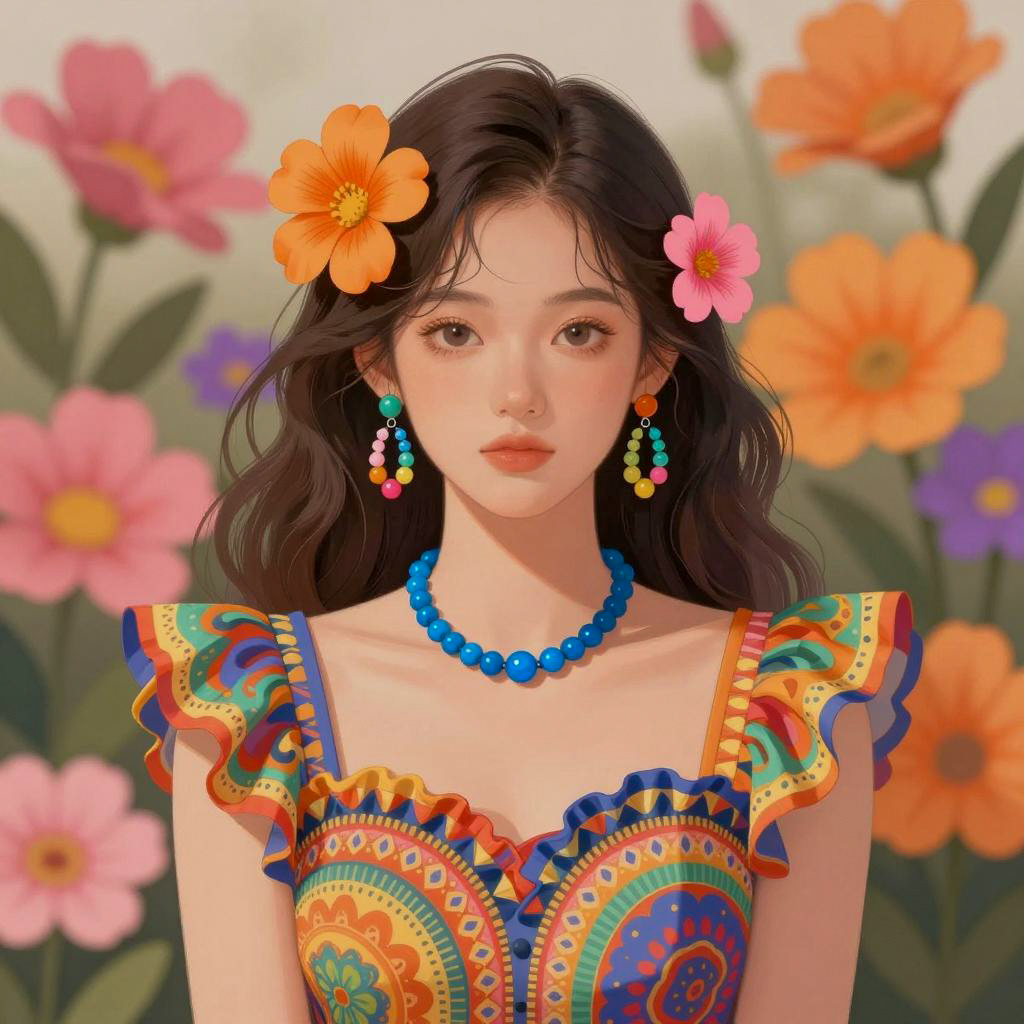 Vibrant Floral Girl Illustration