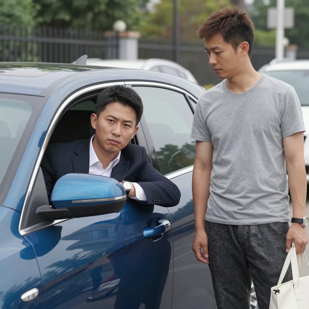 Dramatic Street Scene with Blue Car