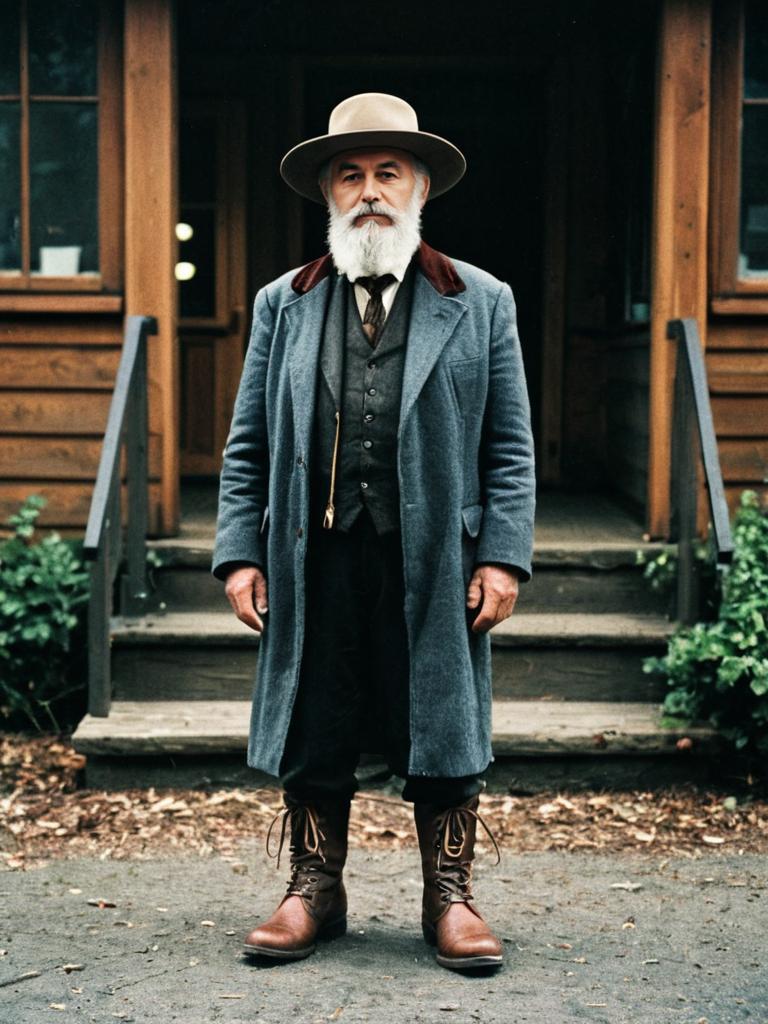 Incerunmen costume, 1boy, solo, male focus, old, old man, beard, facial hair, standing, full body, boots, hat