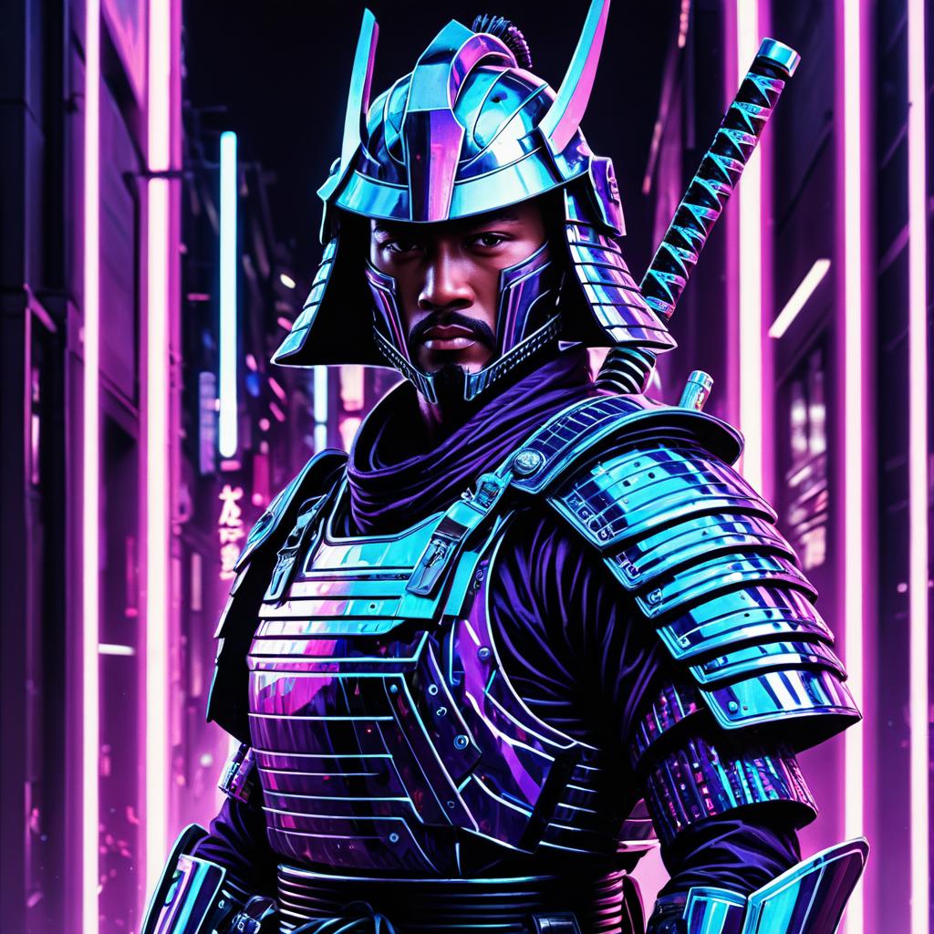 Full character portrait of a space bounty hunter in advanced powered armor, in the style of Ashley Wood, Feng Zhu, Mike Mignola, Paul Chadeisson, space opera, dark metallic tones with glowing accents, concept art, 4k